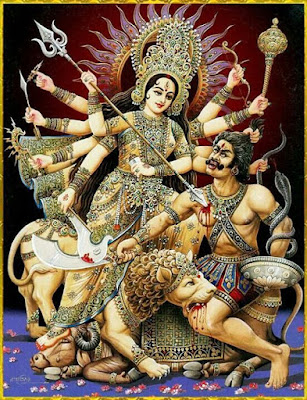 We began this month of tales with the different avatars of Durga-Mata. The tenth day of that festival (which is actually celebrated concurrently with Ramayana and Dusshera) is called Vijayadashami - 'victory of the tenth day'. In this, Durga herself manifests in order to subdue the evil mischief-maker, Mahishasura (whose name literally means Great Demon!)